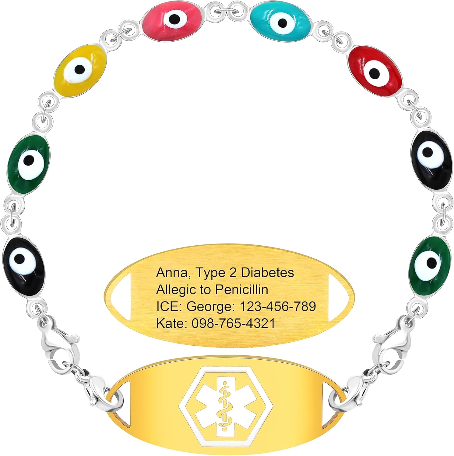 Personalized Emergency Medical Alert Bracelet | Evil Eye Protection Bracelets Lucky Friendship Bracelets for Women